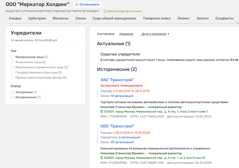 ООО «Меркатор Холдинг» с сентября 2024 года пытается скрывать своих бенефициаров, запретив отображать их в ЕГРЮЛ. Между тем, один и тот же бессменный директор Игорь Храмцов, который с холдингом как минимум с 2013 года и возглавлял иные кубышки, нам намекает, что навели лишь марафет, а не сменили полностью начинку. То есть выгодополучателей никто не менял, лишь попытались скрыть.