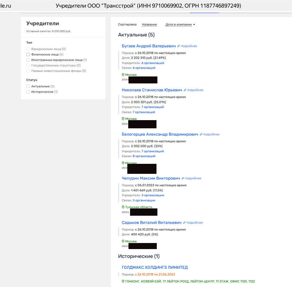 Стоит напомнить, что в течение пяти лет, вплоть до июня 2023 года, среди владельцев было и ГОЛДМАКС ХОЛДИНГЗ ЛИМИТЕД из Гонконга. Директором Goldmax одно время был юрист Алексей Комов, что ранее возглавлял правовой департамент NPV Engineering а. Фирма могла выполнять роль выводной кубышки для капиталов.