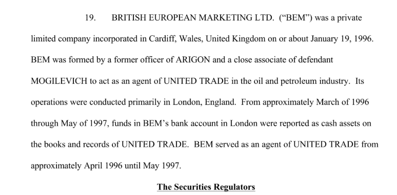 При этом British European Marketing Ltd «засветилась» в решение суда Пенсильвании по делу «США против Могилевича».